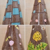 材質:オーブン陶土(陶器と同様の質感です。)焼き上げてありますので一定の耐水性はありますが、長時間水に浸けておく試験はしておりませんのでお控えください。細い部分を力を入れて曲げたり高所から落とすなどの強い衝撃は破損の原因となりますのでお取り扱いにご注意ください。