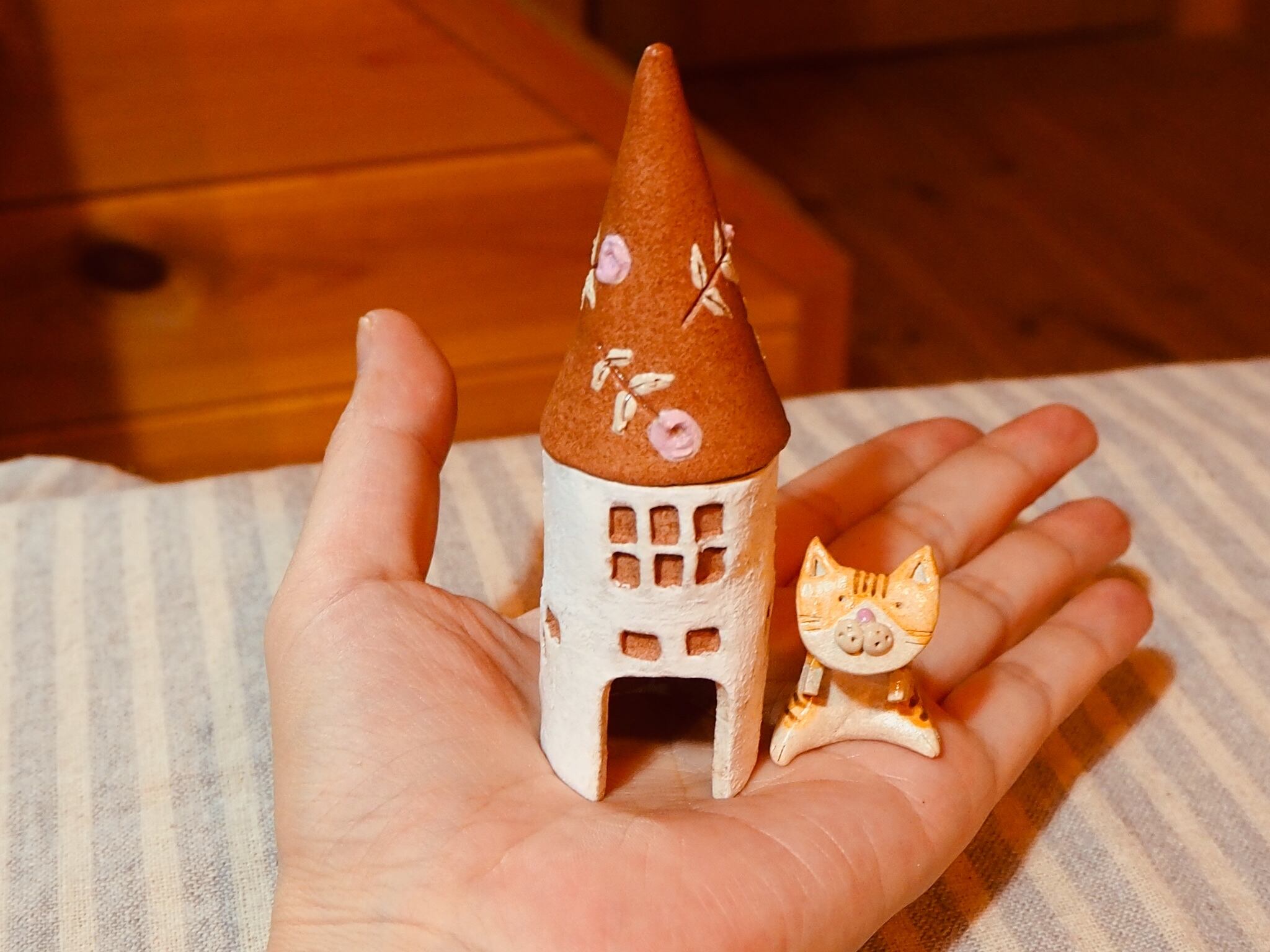 :猫ちゃんハウスのオブジェ[猫のみ] #ペットフィギュア #猫フィギュア#オーブン陶土ハンドメイド雑貨#ねこざっか