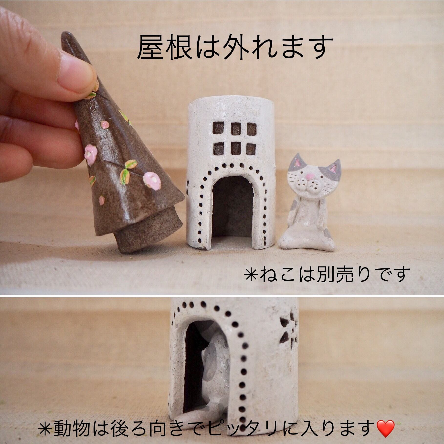 オーブン陶土で作ったハンドメイドオブジェです。お家は別売となります。お好みのお家と動物を自由に組み合わせていただけます。(家のみ、動物のみのでもご注文いただけます。)